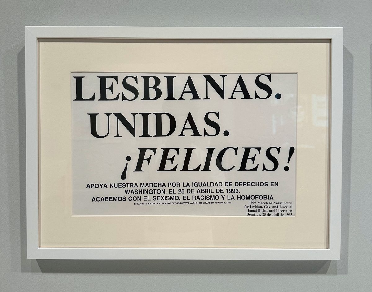 MONTEREY PARK, Calif. — “EN CADA BESO UNA REVOLUCIÓN.” “LESBIANAS. UNIDAS. ¡FELICES!” Such battle cries embody the poetic optimism of Latina lesbian activism across borders at the Vincent Price Art Museum’s On the Side of Angels. Captured by posters for marches in Mexico City and Washington, DC, respectively, and made nearly 20 years apart, they chart an ongoing struggle for liberation. Importantly, these activists rallied not around a single issue but against intersectional forms of oppression: sexism, racism, homophobia, and classism.