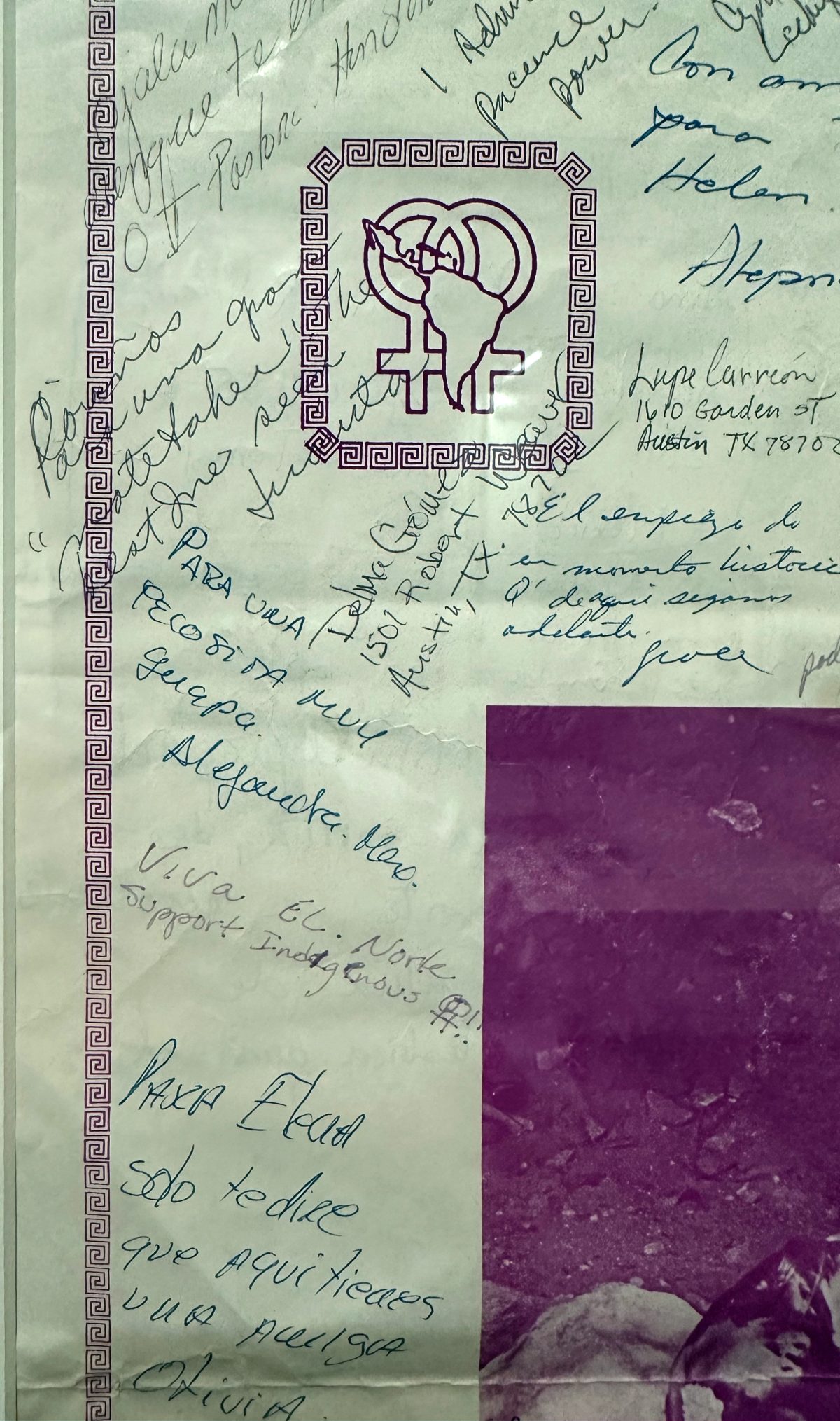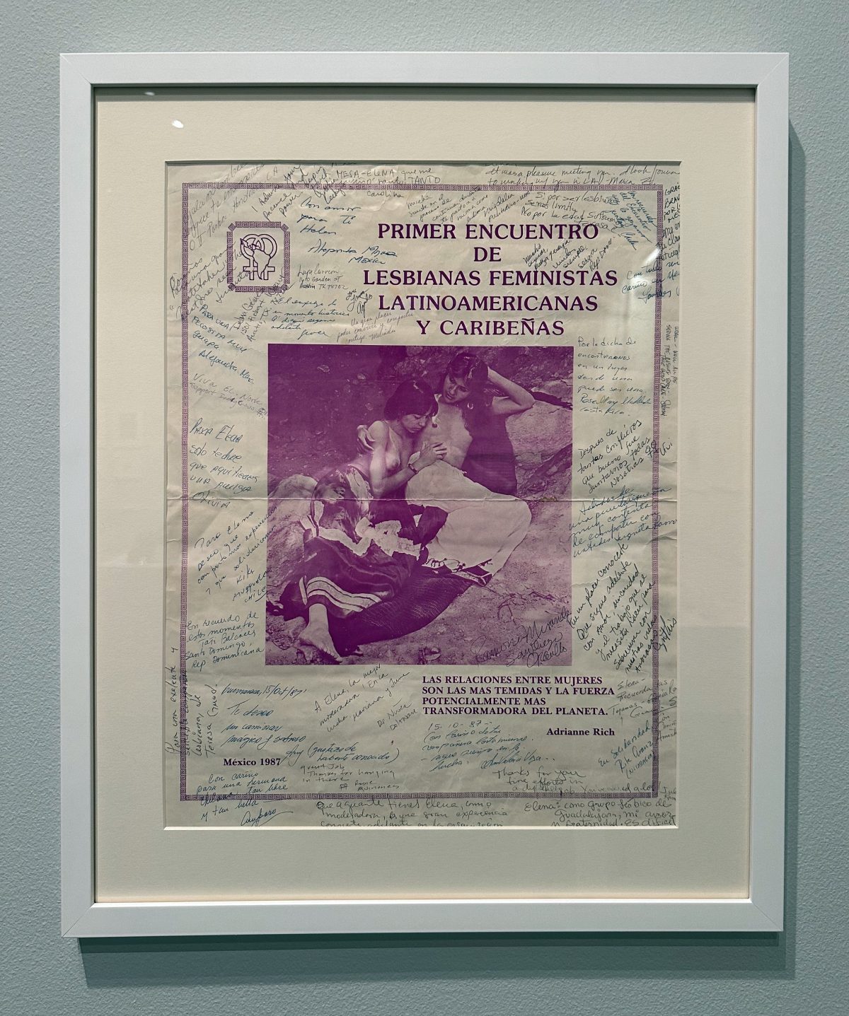 As just one example of the exhibition’s emphasis on collectivity, it sources its name from archivist and former CSRC librarian Yolanda Retter Vargas’s 1999 dissertation. In it, she in turn nods to the gargantuan effort of those before her: The first generation of activists had to unearth, piece by piece, a continual lesbian presence in 400 years of documented United States history. The show includes a video interview between Retter Vargas and Civil Rights advocate Laura Esquivel — whose archive is also prominently featured — in which the former speaks candidly about her experience within activist circles, emphasizing the importance of their intersectional activism and relationships to one another.