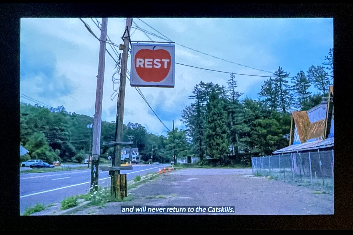 In the video essay “I Never Learned to Play Mah Jongg” (2025), Futernick juxtaposes the archives with present-day images of the Catskills. Now, the roads are lined with decaying buildings, and the small Jewish population in the area is predominantly Hasidic, a much more observant sect than the conservative Jews who vacationed there earlier. In one part, Futernick shows snapshots of old deli advertisements, mentioning that her family doused spaghetti with ketchup instead of tomato sauce. The anecdote perfectly encapsulates the assimilated Jewish experience: doing all one can to be seen as an American, but still not getting it quite right, remaining ostracized from the gentile majority.
