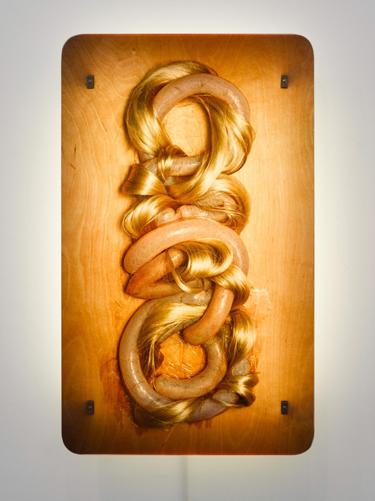 Reading Life Pleasures was, for me, a delightful reencounter with works that transgress the boundaries of traditional materials. Chadwick deftly employed the organic and mundane — raw meat, rotting vegetables, pig intestines, human hair, dead fish, bubble bath, and bubbling chocolate — to confound our notions of desire and disgust and challenge the primacy of sight over our other senses. While such material adventurousness no longer shocks, contemporary conversations seem to have developed a collective amnesia for one of its foremost pioneers.