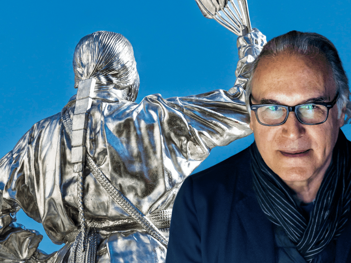 The artist discusses his gleaming installation outside MFA Boston, his journey to reconnect with his Mohawk roots, and how he responded to the racist trope.