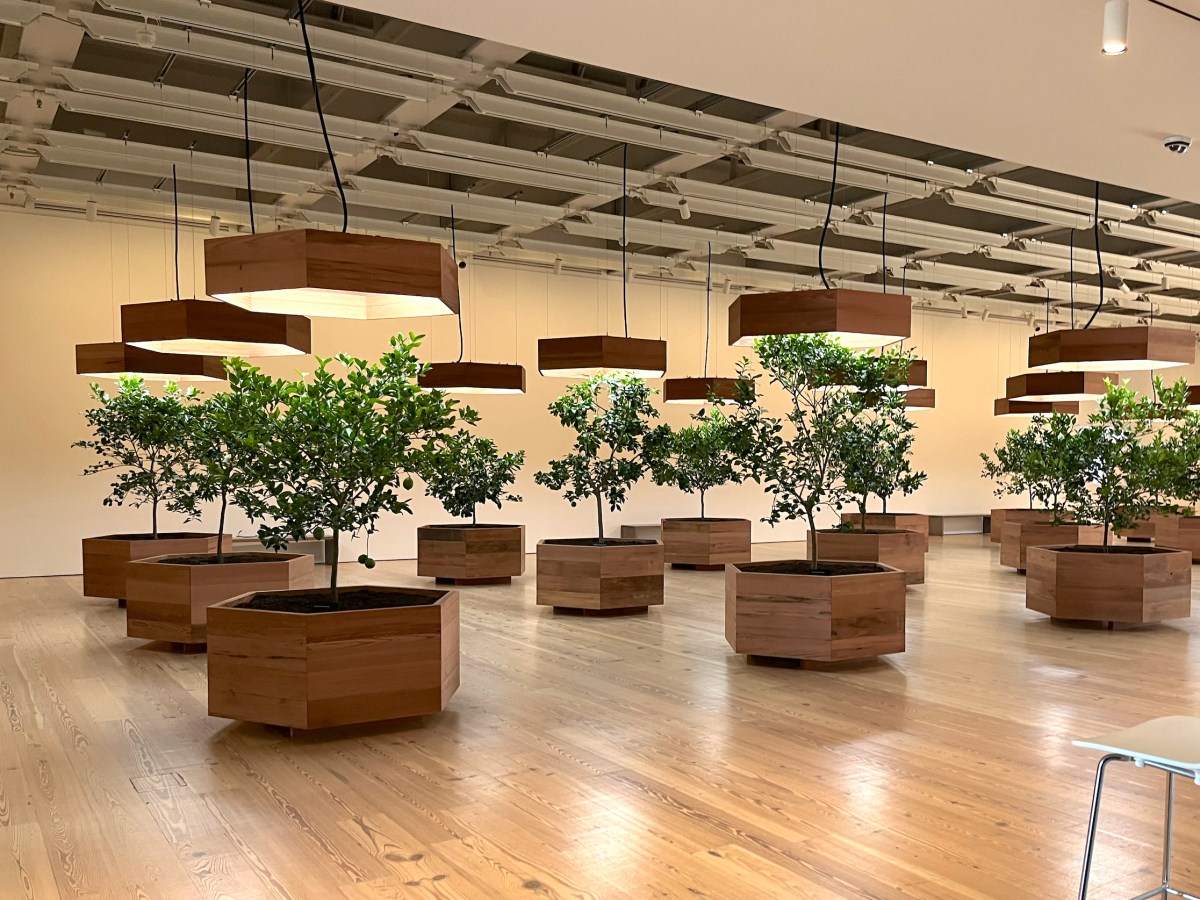 The Harrisons’ Survival Piece #5: Portable Orchard at The Whitney is a calm and orderly response to the dystopian possibilities of climate upheaval.