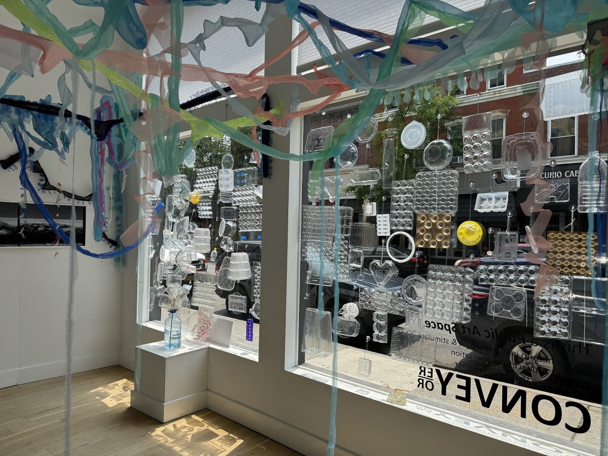 This month, venues across the Hudson Valley are hosting eight different exhibitions in collaboration with Inspiration Art Group International, with each show representing a creative embodiment of a natural ecosystem. Address:Earth – Water Story at Convey/Er/Or presents a poignant installation by Bibiana Huang Matheis and Mimi Czajka Graminski, who together focus on the fragility of our oceans. The artists fitted the front window of the gallery with single-use plastic containers, effectively filling the space with an idiosyncratic, visually pleasing contraption made from trash. Inside the gallery, a hanging fabric sculpture calls to mind a vibrant jellyfish while translucent fabric strips hang from the ceiling, giving the impression of a teeming seascape. Wrapping around the walls are black and white images of human arteries, ocean waves, and glacial formations — stark visions of natural fluids as currents of power and possibility.