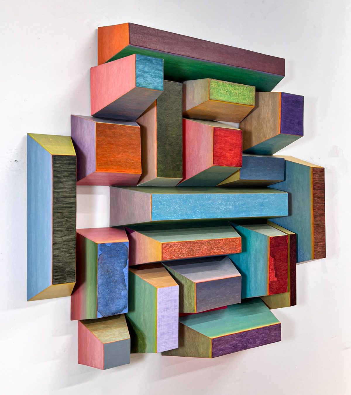 In a flurry of dynamic group exhibitions, Destination Earth is a buoyant representation of regional talent. Featuring 15 artists exploring “what it means to exist in this present moment,” as stated by the gallery. Works such as Katherine Bradford’s “Couple Swimmers” (2025) feature two faceless figures wading into water together against a dark sky, suggesting a night swim. “Jimena with Iguana” (2014) by Garry Nichols is a lavish painting of a woman sitting peacefully with the stoic green creature in her lap, a calm moment of existing in the now. A 1992 quasi-surrealist collage by Judy Pfaff has an anatomical edge, while Greg Slick’s “The Lives of Others #4” (2019) appears to have been carved, though it is actually an abstract acrylic painting. Sculptures by Tony Moore and Cal Lane explore notions of memory and place, and “The Thousand-Eyed Present (from Ralph Waldo Emerson)” (2025) by Meg Hitchcock is a delightfully muscular structure that appears to fold outward in a controlled riot of three-dimensional color.