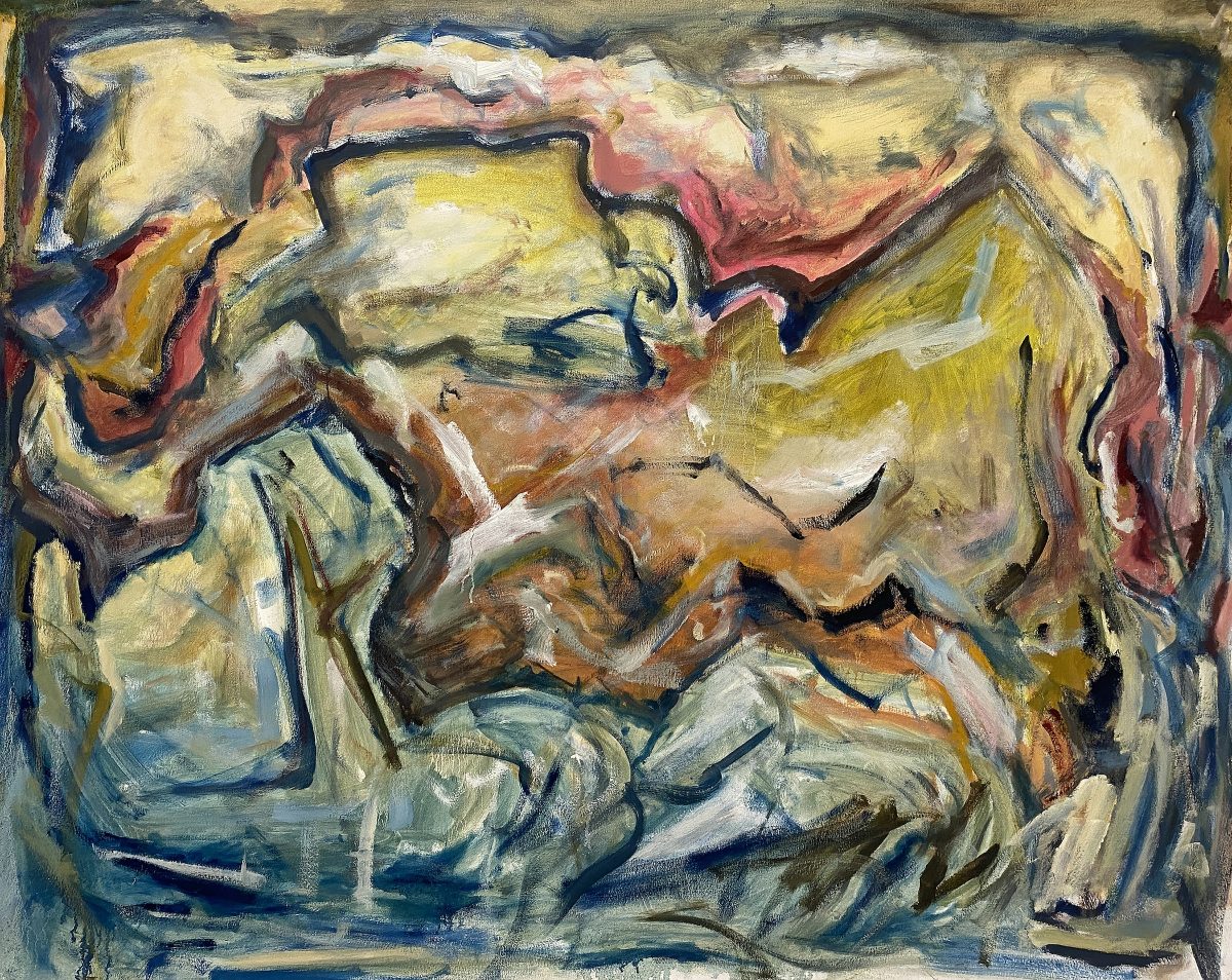 Many contemporary artists regard abstract expressionism as an open-ended movement with the most outrageous possibilities for realization today, and Philip Gebhardt is a diehard among them. His solo show Beyond Form is just that — beyond form, time, even beyond abstraction itself, though maintaining a verve for it all the same. With passionate titles such as “Hold Me” (2022) and “A Grasp and A Gaze” (2024), Gebhardt pulls us into his cubist-style figurative scenes and wildly expressive landscapes. “Tangled” (2024) is reminiscent of bodies jumbled together gleefully in bed, while “The Mending II” (2024) reflects the perfectly chaotic and richly hued realms of the artist’s fluid fancies.