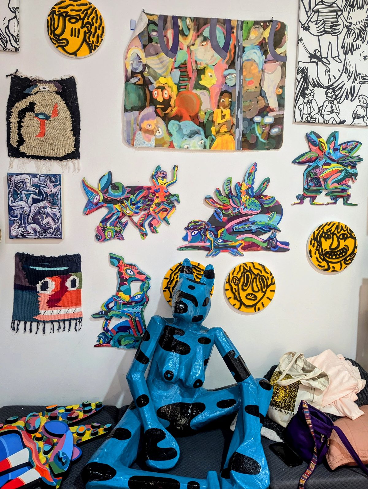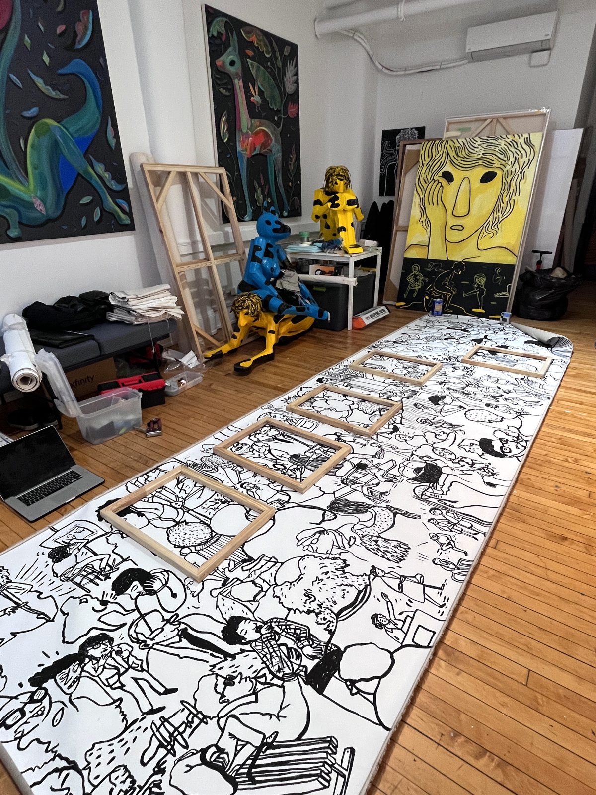 Over the years, I’ve come to see my studio as both an escape and a bridge, a space that connects my imagination to reality. It’s where I live inside my head, play with ideas, and translate them into physical form. I treat my studio practice like a 9 to 5 job. I take about 30 minutes to an hour to settle in, reviewing what I did the day before, rethinking decisions, and clearing my head. It’s my ritual to find my center before the real work begins. If I’m not mentally present, nothing good happens on the canvas.