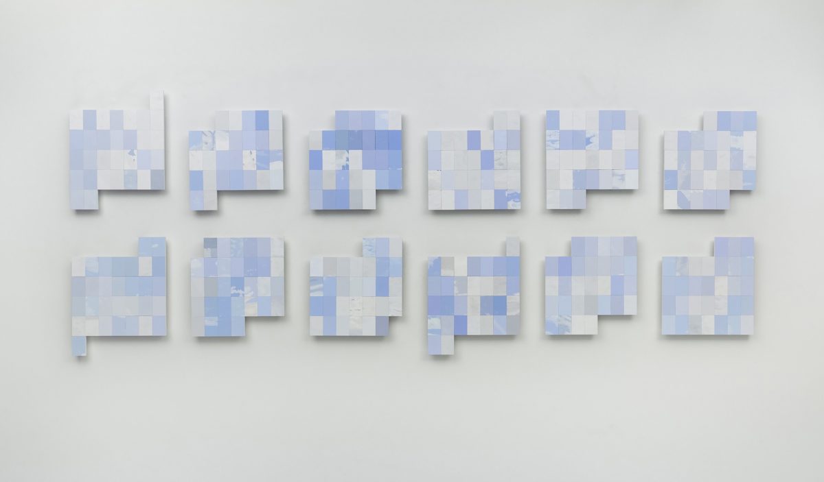 A watery blue tone surfaces throughout various mixed-media works in the group show etheReality from breath to air, and back, which embodies the celestial. Curated by gallery director Alison McNulty, works such as “Enter Through Smoke” (2023) by Mollie McKinley radiate a mystical energy; made of carved and charred salt and blown glass, it is both organic and otherworldly. Linda Stillman’s “Daily Skies” (2011), a series of paper panels, appears to hum harmoniously with diverse shades of cobalt in a geometric pattern, while Amy Talluto’s clay sculpture “Multi-head (Spill Vase)” (2022) is a form that simultaneously resembles a fleshy human and something never before seen.