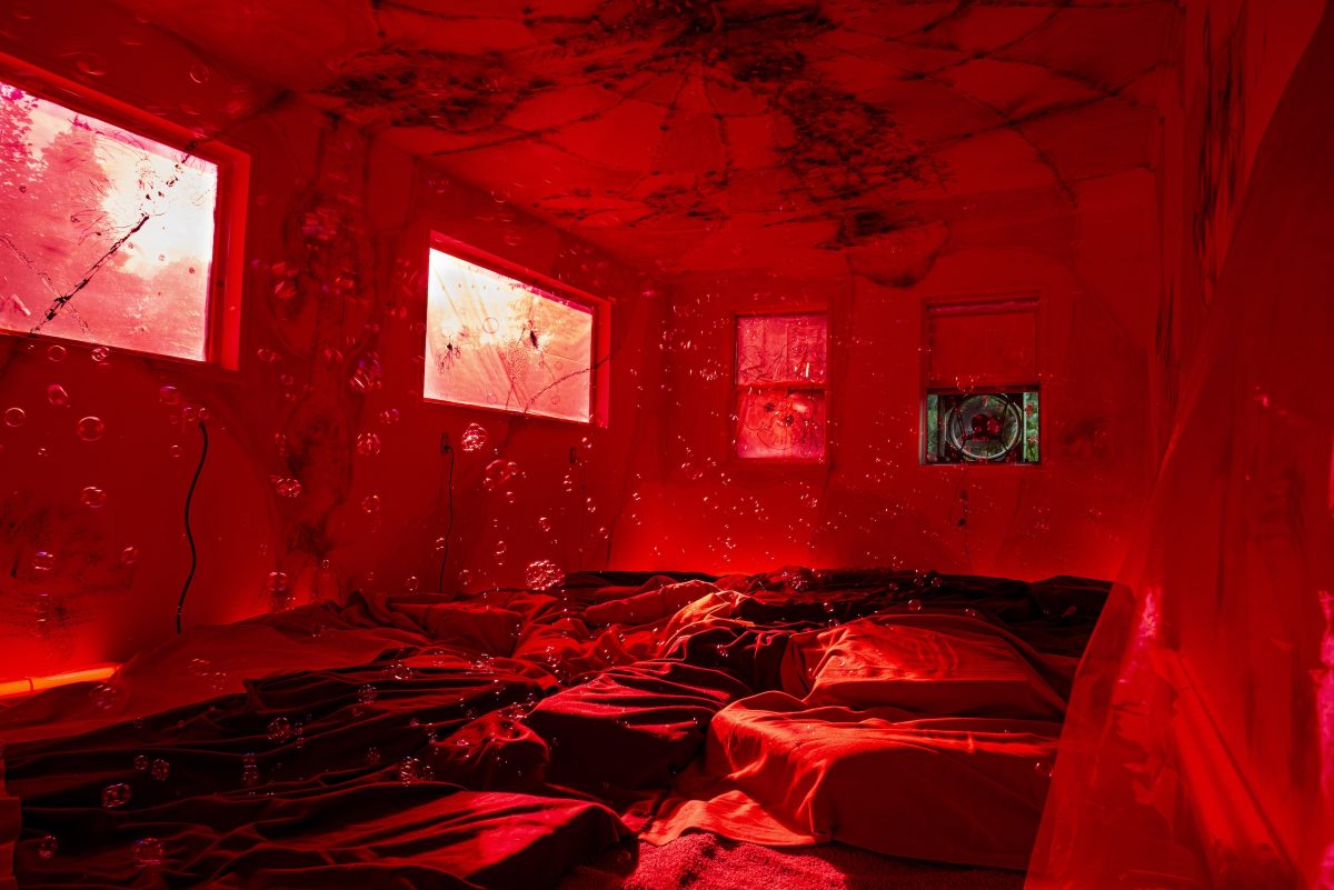 The harsh realities of our world are softened by the steadfast gifts of nature, and August in Upstate New York brings its annual plentitude with art to match. As sunflowers rule the land this month, solo shows and group exhibitions around the region bring warmth and glee. Daniel Giordano presents a red-hued site-specific installation at the experimental Green Lodge in Chatham. Dynamic gallery shows in Kingston include paintings and sculptures by Jeanette Fintz and Monika Zarzeczna, respectively, both showing at 68 Prince Street Gallery; and Brandon Thomas Brown tells the story of ancestry through collaged photographs at Pinkwater Gallery. Exquisite mixed-media works by Ken Ragsdale at Front Room Gallery in Hudson will charm you, and Lynne Tobin’s line studies at Cross Contemporary Art Projects in Stone Ridge are cool and conceptual. Check out stoic paintings of the United States by Little Walt Dog at Ruffed Grouse Gallery in Narrowsburg and experience the vibrant energy of a group show at Gallery 495 in Catskill. With mighty August as our guiding light, let us enjoy these fleeting days of summer and an abundance of art this month!