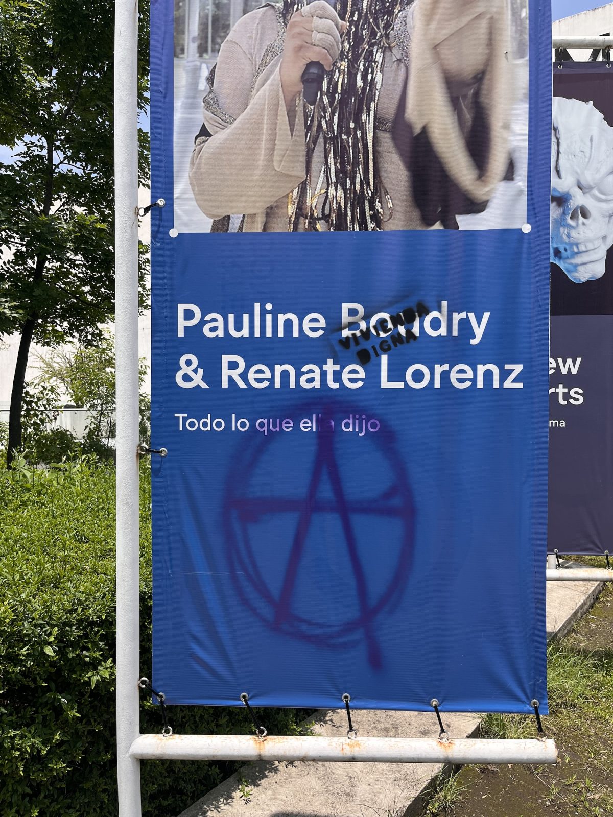 Among the signatories was artist Magali Lara, whose ongoing career retrospective at the MUAC is visible from the gallery windows facing the esplanade.