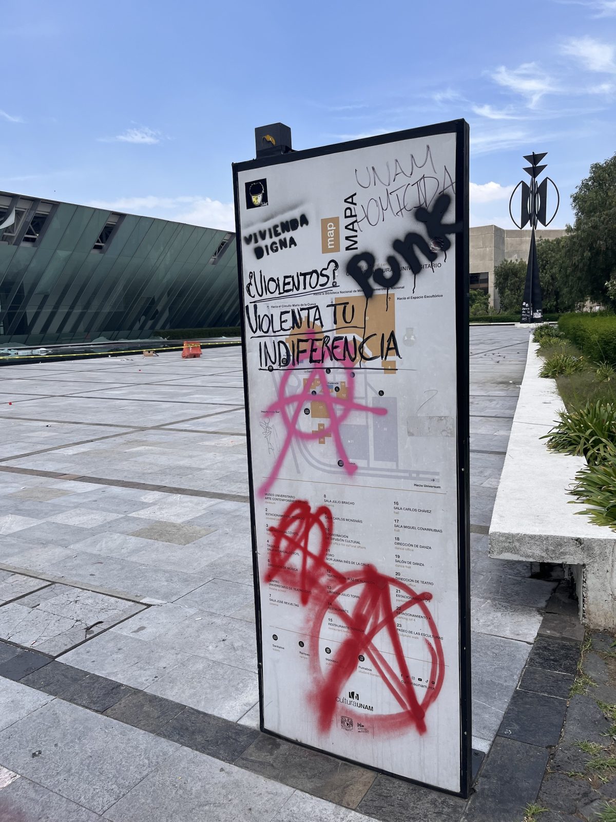MEXICO CITY — A group of anti-gentrification protesters vandalized the contemporary art museum of the National Autonomous University of Mexico (UNAM) on Sunday, July 20, as demonstrations against rising housing prices and the growing displacement of local residents continue across the city.