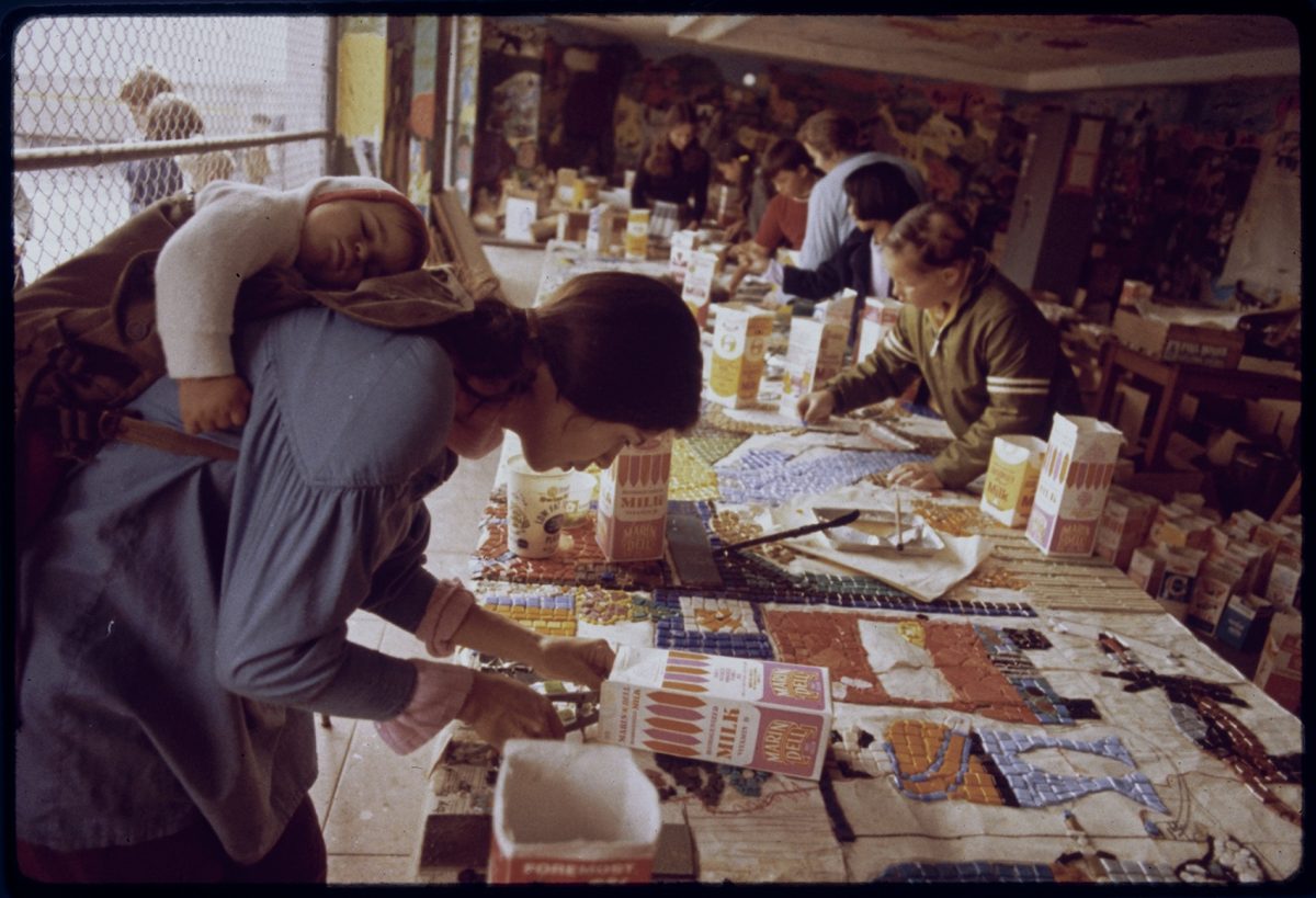 She organizes the book into three parts: “Household Objects,” “Metaphors of (Pro)creation,” and “Caretaking in Public.” The first usefully delves into the artists’ chosen materials, such as paper and wire, that had no fumes, and were thus not dangerous to children and compatible with nurture work. Troeller writes that Asawa “was someone in constant dialogue with fragility, dependence, and vulnerability.” Interruption and responsiveness are not just conditions of childcare and time and space, Asawa affirmed, but of creativity and generativity. The skills of keeping a human alive are inherently artistic.
