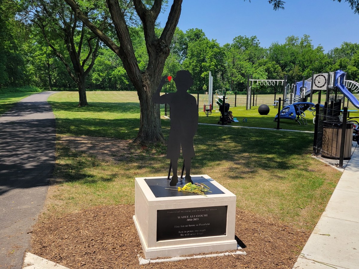 Wadee Alfayoumi, who was murdered by his family’s landlord in 2023 in an anti-Muslim hate crime, is remembered in a new sculpture in his hometown.