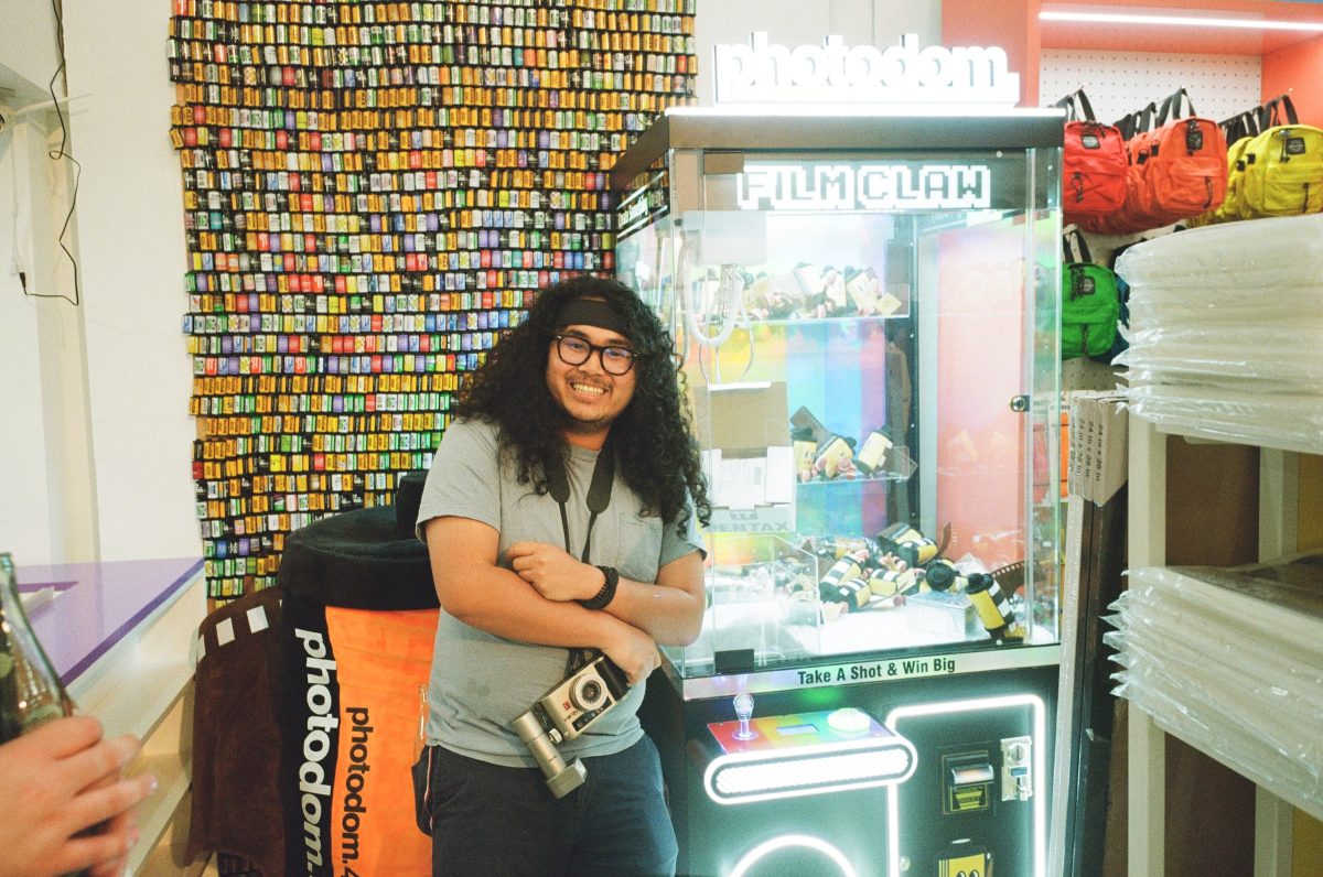 Throughout the day, visitors streamed through the bright and colorful 1,600-square-foot space, browsing gear, merch, and rentals. A retro claw machine filled with plush toys, film rolls, and cameras drew a crowd. “It’s actually my birthday!” said portrait photographer Den Alexander, who was trying to win a Film Buddy plushie. “I thought it’d be cool to check out all the merch and see everything laid out in person in a big space.”