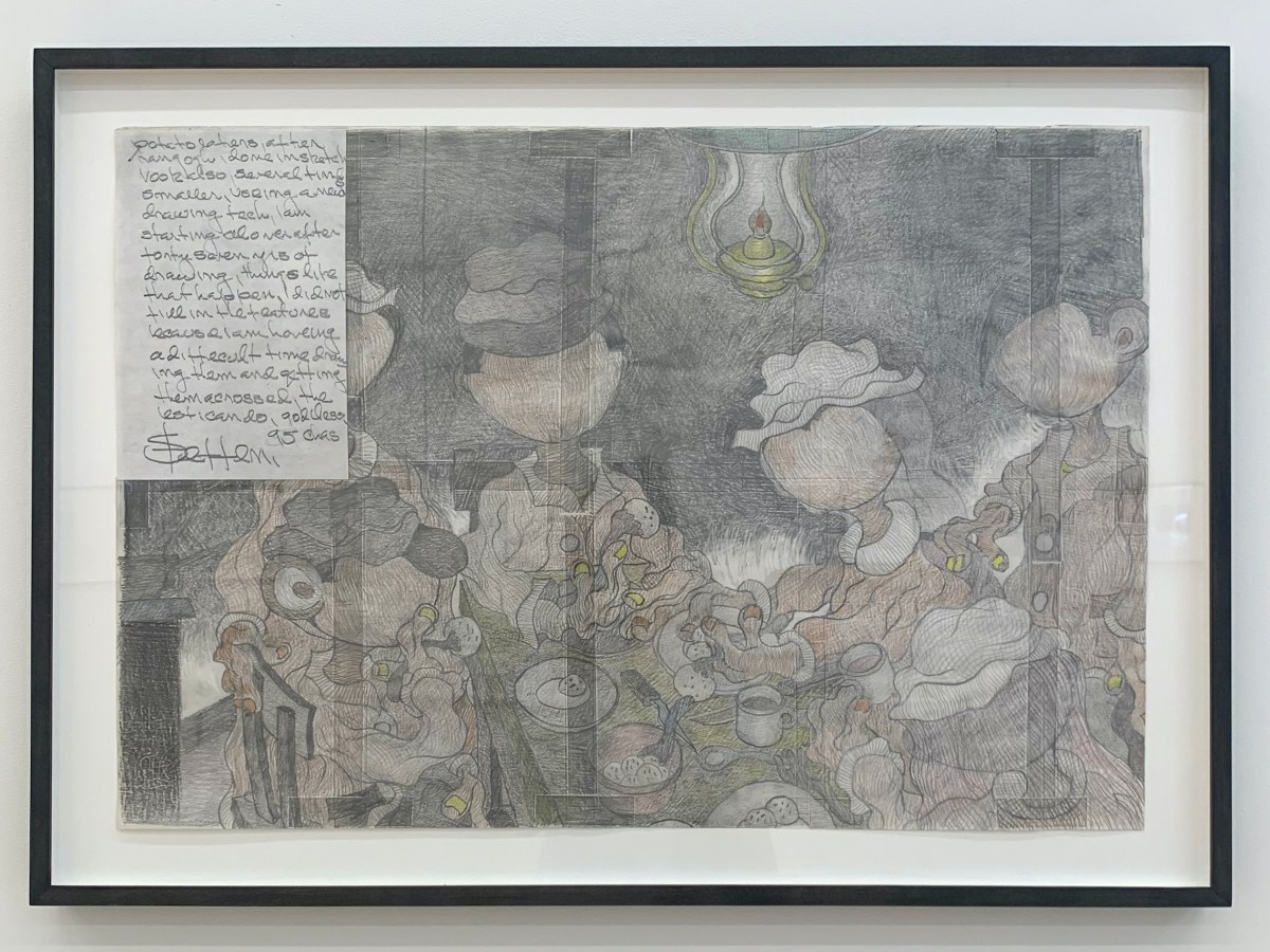 After suffering a nervous breakdown, the late Chicago artist began to make his surreal graphite and colored pencil portraits on found paper.
