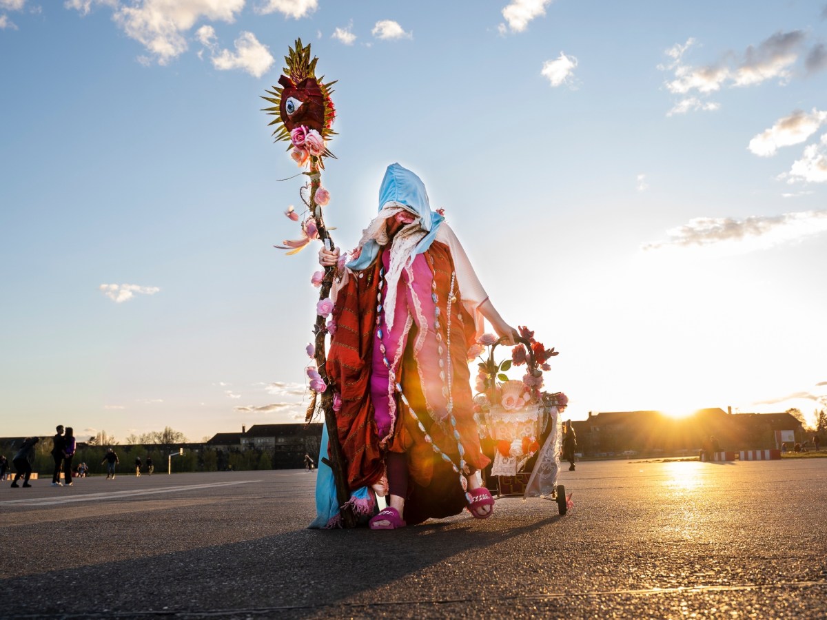 Dressed in flowing pink robes, artist and activist Dee Mulrooney — or “Growler” — is urging the British Museum to return a Síle na Giġ statue back to Ireland.